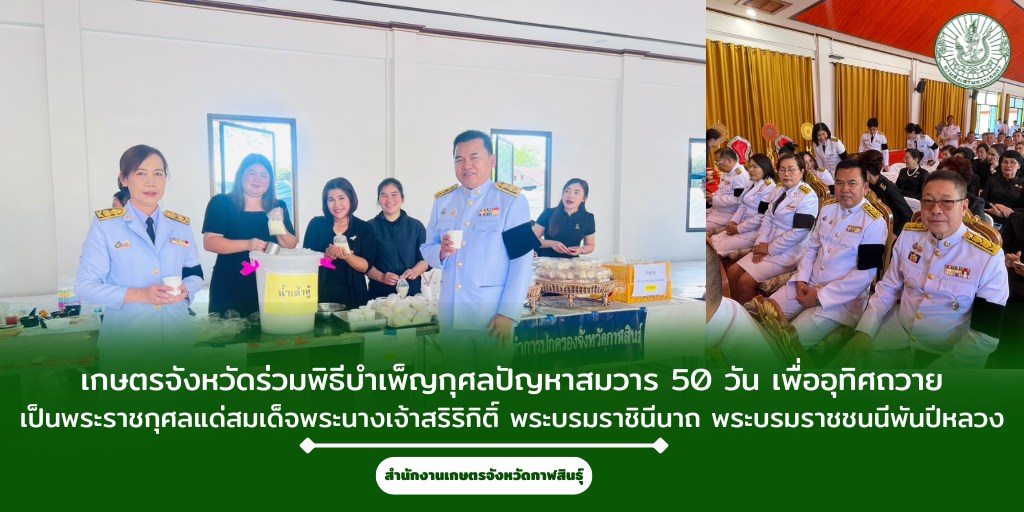 [เกษตรจังหวัดกาฬสินธุ์ร่วมพิธีบำเพ็ญกุศลปัญหาสมวาร 50 วัน เพื่ออุทิศถวายเป็นพระราชกุศลแด่สมเด็จพระนางเจ้าสริริกิติ์ พระบรมราชินีนาถ พระบรมราชชนนีพันปีหลวง] 13 ธันวาคม 2025