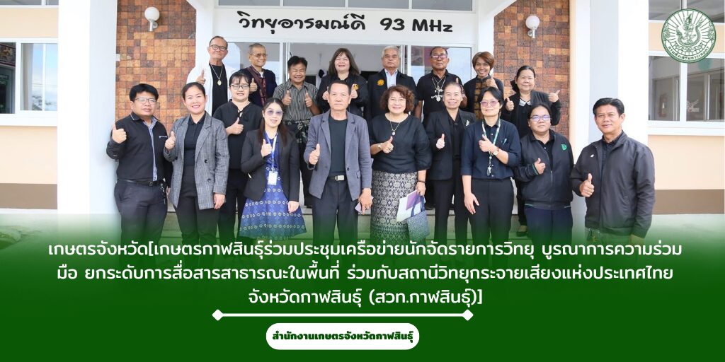 [เกษตรกาฬสินธุ์ร่วมประชุมเครือข่ายนักจัดรายการวิทยุ บูรณาการความร่วมมือ ยกระดับการสื่อสารสาธารณะในพื้นที่ ร่วมกับสถานีวิทยุกระจายเสียงแห่งประเทศไทยจังหวัดกาฬสินธุ์ (สวท.กาฬสินธุ์)] 18 ธันวาคม 2025