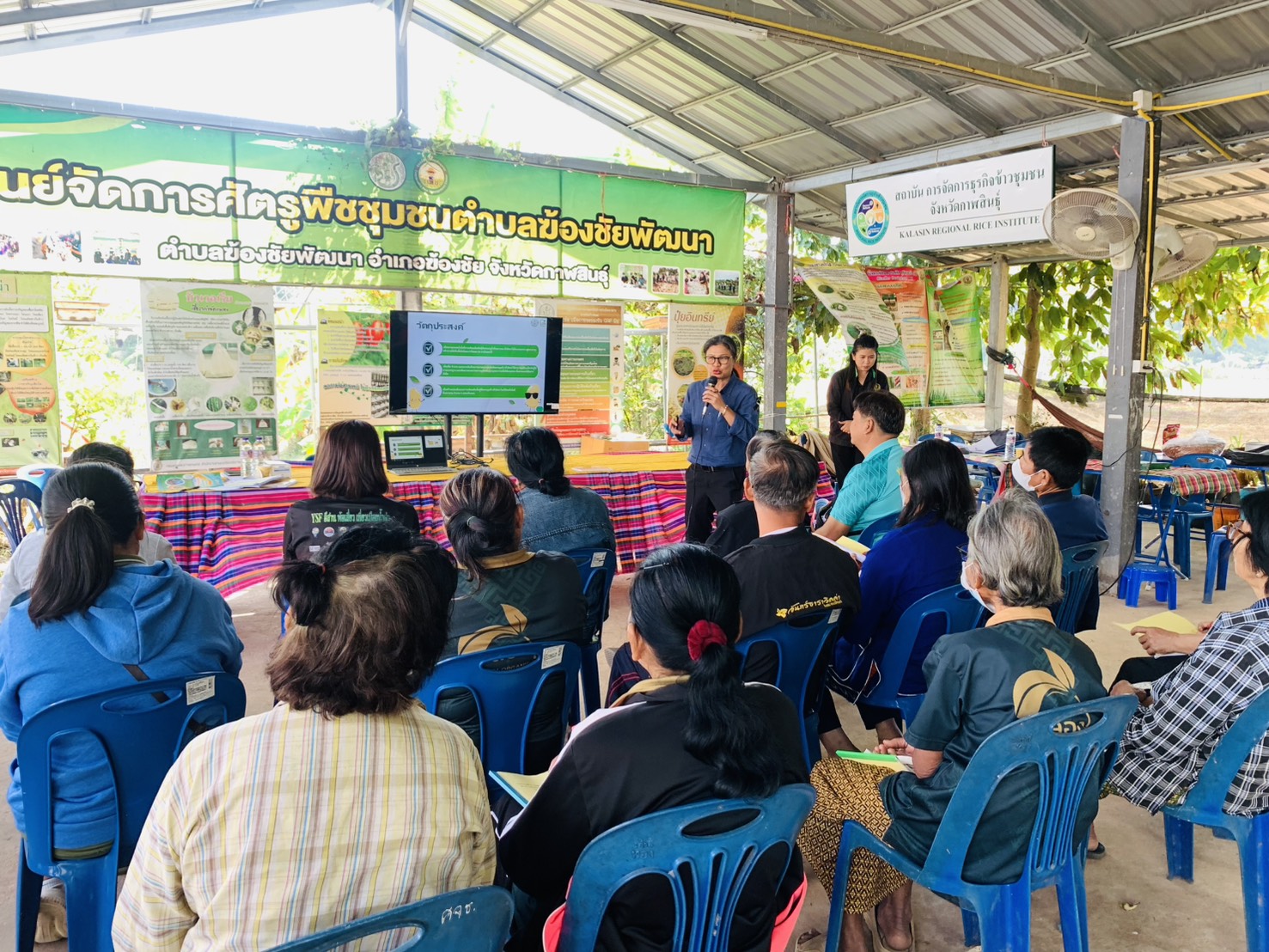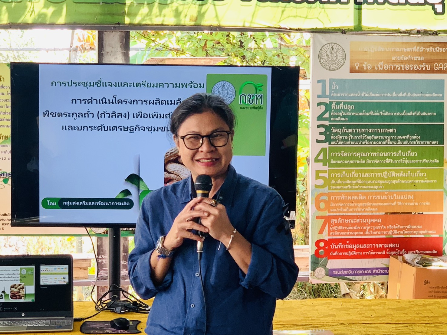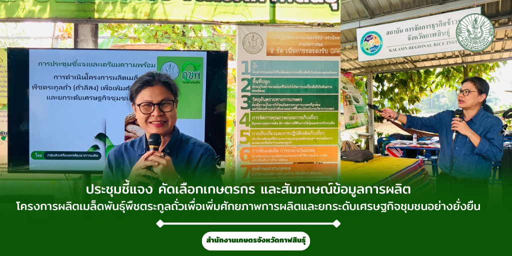 นที่ 26 พฤศจิกายน 2568 นายคมกริช ไตรยศ เกษตรจังหวัดกาฬสินธุ์ มอบหมายให้ น.ส.อริสรา ภูเด่นผา หัวหน้ากลุ่มส่งเสริมและพัฒนาการผลิต พร้อมเจ้าหน้าที่ ดำเนินการจัดการประชุมชี้แจง คัดเลือกเกษตรกร และสัมภาษณ์ข้อมูลการผลิตโครงการผลิตเมล็ดพันธุ์โครงการผลิตเมล็ดพันธุ์พืชตระกูลถั่วเพื่อเพิ่มศักยภาพการผลิตและยกระดับเศรษฐกิจชุมชนอย่างยั่งยืน ณ ศูนย์จัดการศัตรูพืชชุมชน อำเภอฆ้องชัย จังหวัดกาฬสินธุ์ เพื่อขยายผลเทคโนโลยีการผลิตเมล็ดพันพืชตระกูลถั่วที่เหมาสม (ถั่วลิสง) ให้กับเกษตรกร ทำให้เกิดรายได้ที่เพิ่มขึ้น