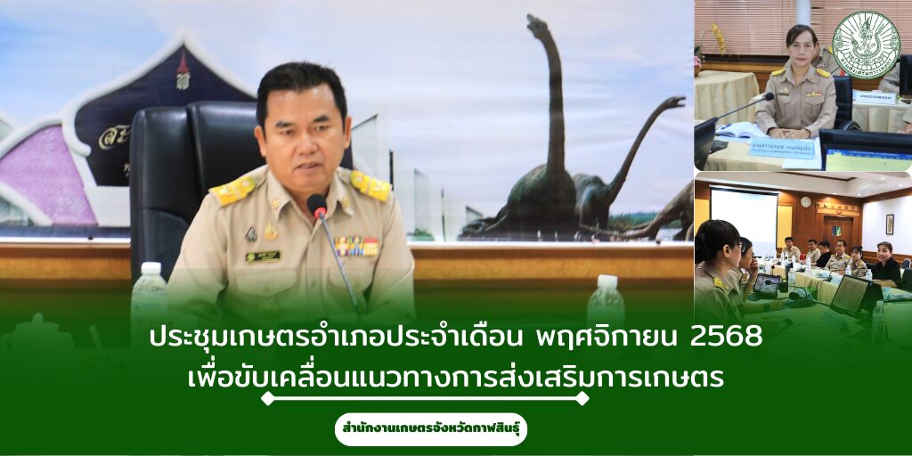 วันที่ 1 ธันวาคม 2568 นายคมกริช ไตรยศ เกษตรจังหวัดกาฬสินธุ์ ได้เป็นประธานในการประชุมเกษตรอำเภอประจำเดือน พฤศจิกายน 2568 ณ สำนักงานเกษตรจังหวัดกาฬสินธุ์ เพื่อติดตามผลการดำเนินงานโครงการฯ และขับเคลื่อนแนวทางการส่งเสริมการเกษตรในพื้นที่จังหวัดกาฬสินธุ์