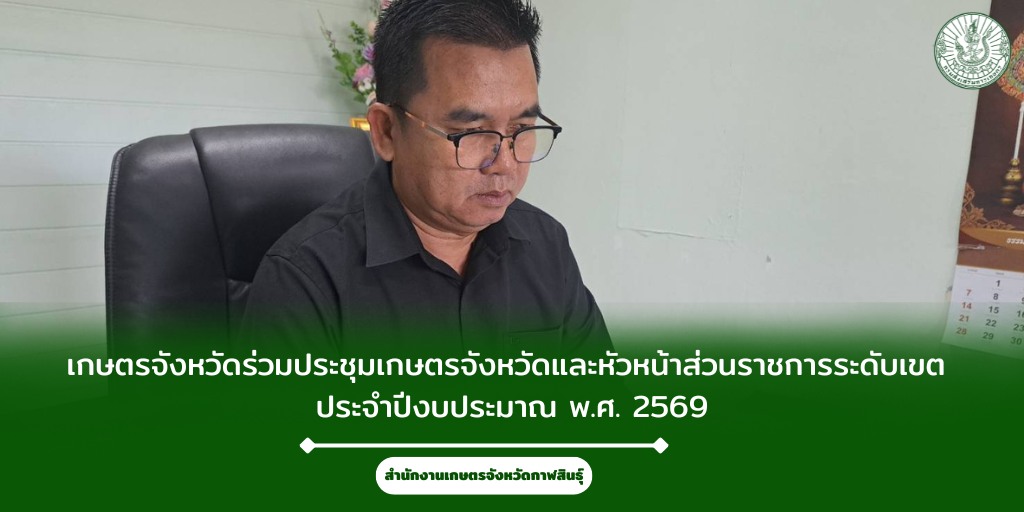 วันที่ 12 ธันวาคม 2568 นายคมกริช ไตรยศ เกษตรจังหวัดกาฬสินธุ์ เข้าร่วมการประชุมเกษตรจังหวัดและหัวหน้าส่วนราชการ ระดับเขต ประจำปีงบประมาณ พ.ศ. 2569 ผ่านระบบการประชุมทางไกล (Zoom Meeting) เพื่อนำเสนอความก้าวหน้าในการดำเนินงานโครงการฯ และการขับเคลื่อนแนวทางการส่งเสริมการเกษตรต่อไป