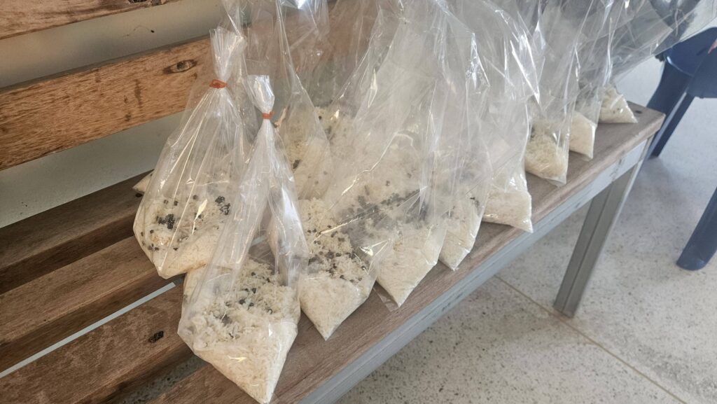 เวลา 14.00 น. นางจุรีรัตน์ หนองสุธรรม นักวิชาการส่งเสริมการเกษตรชำนาญการ รักษาราชการแทนเกษตรอำเภอดอนจาน พร้อมด้วยเจ้าหน้าที่สำนักงานเกษตรอำเภอดอนจาน ร่วมผลิตสารชีวภัณฑ์เชื้อราไตโครเดอร์ม่า สำหรับแจกจ่ายให้แก่เกษตรกรผู้เข้ารับการสนับสนุนปัจจัยการผลิตพืชผลทางการเกษตร