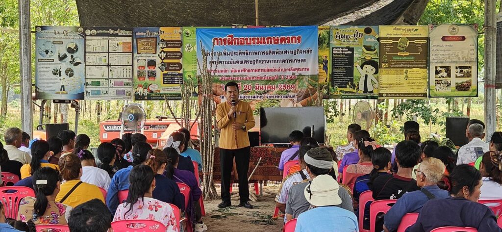 นางจุรีรัตน์ หนองสุธรรม นักวิชาการส่งเสริมการเกษตรชำนาญการ รักษาราชการแทนเกษตรอำเภอดอนจาน มอบหมายให้นายสหชาติ ยมภา นักวิชาการส่งเสริมการเกษตรปฏิบัติการ พร้อมด้วยเกษตรกรผู้ปลูกมันสำปะหลัง ตำบลสะอาดไชยศรี อำเภอดอนจาน 10 ราย เข้าร่วมอบรมโครงการเพิ่มประสิทธิภาพการผลิตพืชเศรษฐกิจหลัก สร้างความมั่นคงเศรษฐกิจฐานรากภาคการเกษตร เพื่อพัฒนาศักยภาพการผลิตมันสำปะหลังคุณภาพ โดยมี นายคมกริช ไตยยศ เกษตรจังหวัดกาฬสินธุ์ เป็นประธานเปิดกิจกรรมฯ