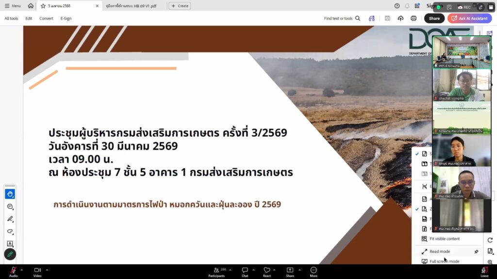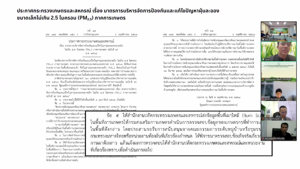 ทั้งนี้ นายสหชาติ ยมภา ได้เข้าร่วมการประชุมผ่านระบบการประชุมทางไกล (Zoom Meeting) ณ สำนักงานเกษตรอำเภอดอนจาน จังหวัดกาฬสินธุ์ การบูรณาการความร่วมมือและเตรียมความพร้อมในระดับเจ้าหน้าที่ผู้ปฏิบัติงานครั้งนี้ ถือเป็นฟันเฟืองสำคัญที่จะช่วยให้อำเภอดอนจานสามารถรับมือกับสถานการณ์การเผาในพื้นที่โล่งได้อย่างมีประสิทธิภาพ และพร้อมมุ่งหน้าสู่เป้าหมายการสร้างชุมชนเกษตรปลอดการเผาที่ยั่งยืนต่อไป