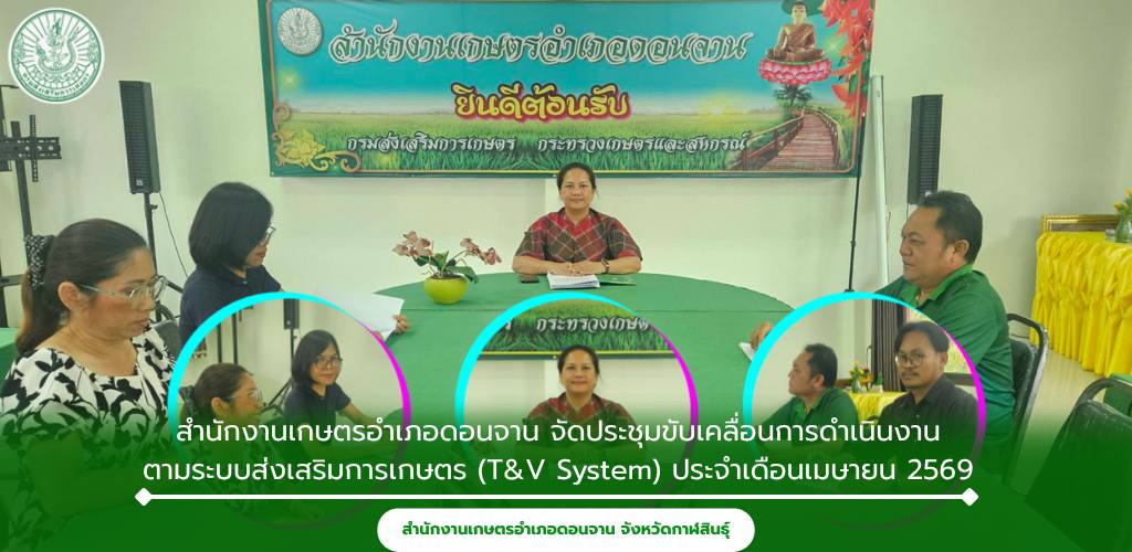 สำนักงานเกษตรอำเภอดอนจาน จัดประชุมขับเคลื่อนการดำเนินงานตามระบบส่งเสริมการเกษตร (T&V System) ประจำเดือนเมษายน 2569