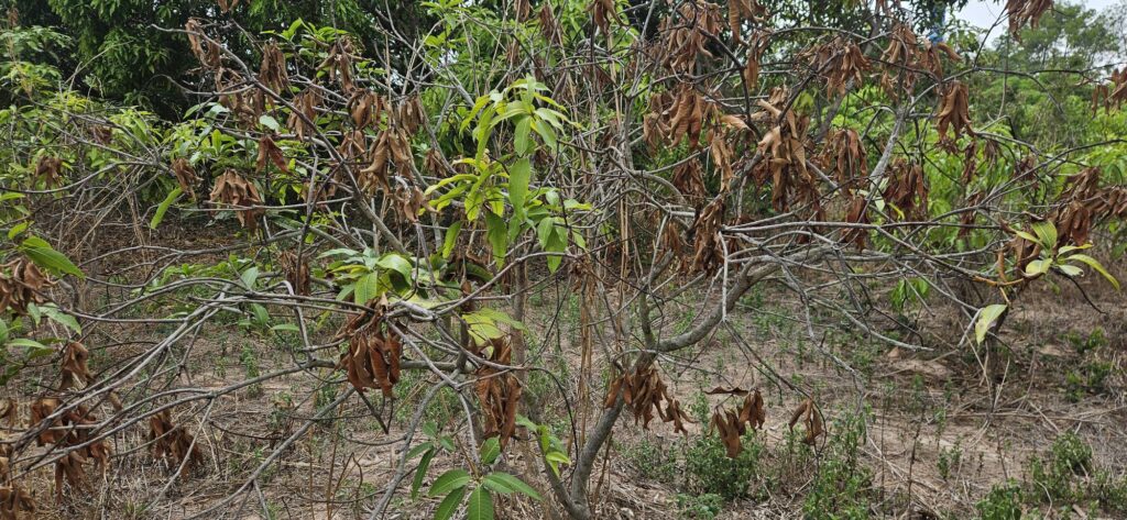 จากการตรวจสอบอย่างละเอียดพบว่า มะม่วงมีอาการของ โรคยางไหลและกิ่งแห้ง ซึ่งส่งผลกระทบต่อผลผลิตโดยตรง เจ้าหน้าที่จึงได้ให้คำแนะนำเชิงเทคนิคในการจัดการโรคอย่างถูกวิธี พร้อมสนับสนุน สารชีวภัณฑ์ เพื่อใช้ควบคุมศัตรูพืชและฟื้นฟูสภาพต้นอย่างปลอดภัย เพื่อสร้างความมั่นใจและบรรเทาความเดือดร้อนให้แก่พี่น้องเกษตรกรในพื้นที่