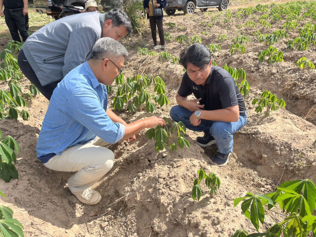 วันที่ 24 ธันวาคม 2568 นายอดิศักดิ์ เทพาศิริ นักวิชาการส่งเสริมการเกษตรชำนาญการพิเศษ รักษาราชการแทนเกษตรอำเภอห้วยเม็ก พร้อมด้วยเจ้าหน้าที่สำนักงานเกษตรอำเภอห้วยเม็ก ร่วมกับเจ้าหน้าที่กรมส่งเสริมการเกษตร นำโดย นายนิพิจ พินิจผล ผู้อำนวยการกองขยายพันธุ์พืช และเจ้าหน้าที่ศูนย์ขยายพันธุ์พืชที่ 7 จังหวัดมหาสารคาม ลงพื้นที่เยี่ยมชมการดำเนินงานของกลุ่มเกษตรกร โครงการผลิตและขยายพืชพันธุ์ดีเพื่อเพิ่มประสิทธิภาพการผลิตและยกระดับความมั่นคงด้านอาหาร และโครงการผลิตเมล็ดพันธุ์พืชตระกูลถั่วเพื่อเพิ่มศักยภาพการผลิตและยกระดับเศรษฐกิจชุมชนอย่างยังยืน ประจำปีงบประมาณ พ.ศ.2569 ซึ่งเป็นการบูรณาการร่วมกันกับสำนักงานเกษตรจังหวัดกรมวิชาการเกษตร ฯลฯ โดยมีการจัดทำแปลงขยายพันธุ์มันสำปะหลัง พันธุ์อิทธิ 1 ในพื้นที่ปลูกจำนวน 10 ไร่ อายุปลูก 2 เดือน ณ แปลงเกษตรกรบ้านหนองแก ตำบลทรายทอง อำเภอห้วยเม็ก จังหวัดกาฬสินธุ์