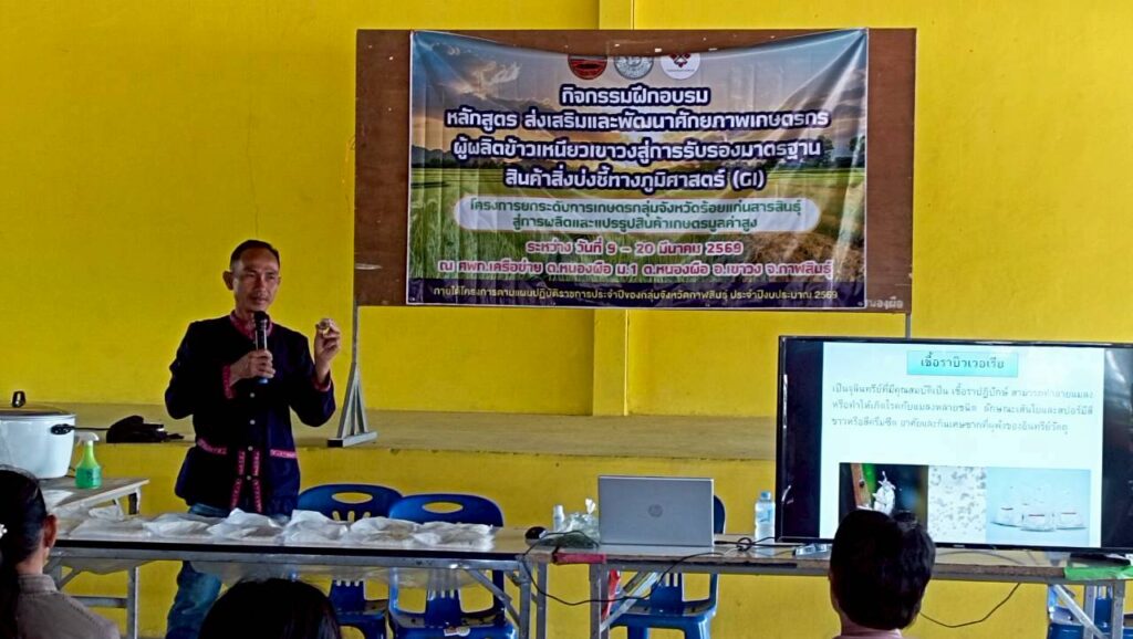สำนักงานเกษตรอำเภอเขาวง ร่วมกับสำนักงานเกษตรจังหวัดกาฬสินธุ์ จัดอบรมหลักสูตรส่งเสริมและพัฒนาศักยภาพเกษตรกรผู้ผลิตข้าวเหนียวเขาวง สู่การรับรองมาตรฐานสินค้าสิ่งบ่งชี้ทางภูมิศาสตร์ (GI) ครั้งที่ 1By khaowong / 10 มีนาคม 2026