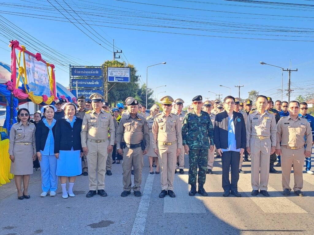 ร่วมพิธีเปิดจุดตรวจหลักศูนย์ปฏิบัติการป้องกันและลดอุบัติเหตุทางถนนช่วงเทศกาลปีใหม่ พ.ศ. 2569 ณ จุดตรวจหลัก หน้าสำนักงานการไฟฟ้าส่วนภูมิภาค สาขาฆ้องชัย พร้อมด้วยหัวหน้าส่วนราชการ ผู้บริหารองค์กรปกครองส่วนท้องถิ่น เจ้าหน้าที่ตำรวจ เจ้าหน้าที่ฝ่ายปกครอง สมาชิกอส.อ.ฆ้องชัย ที่ 20 ผอ.รพ.ฆ้องชัย สาธารณสุขอำเภอฆ้องชัย กู้ชีพกู้ภัยอำเภอฆ้องชัย กำนัน ผู้ใหญ่บ้าน ประชาชนจิตอาสา และชุดรักษาความปลอดภัยหมู่บ้าน เข้าร่วมพิธีเปิดศูนย์ฯ 5 มกราคม 2026