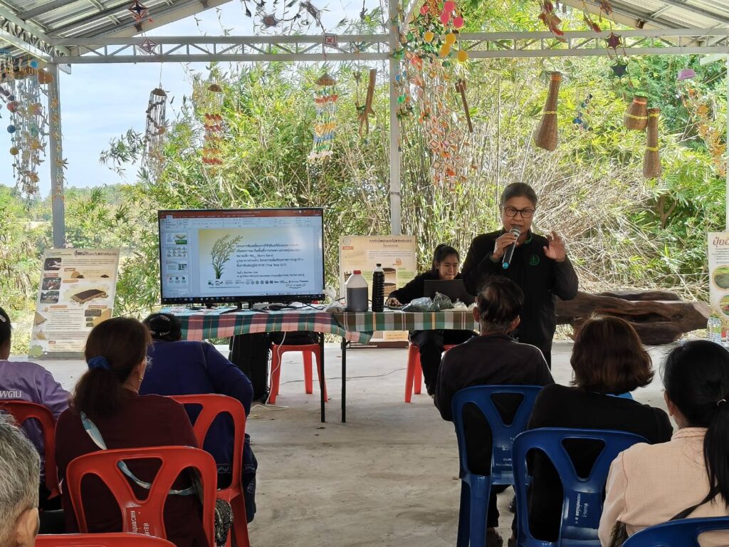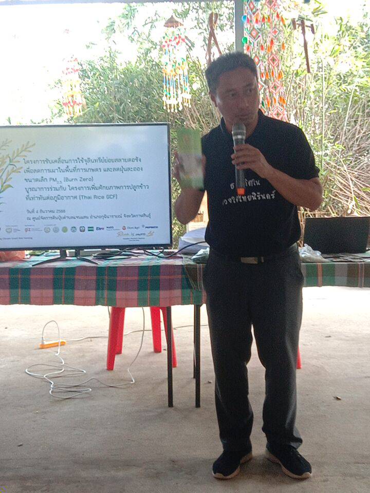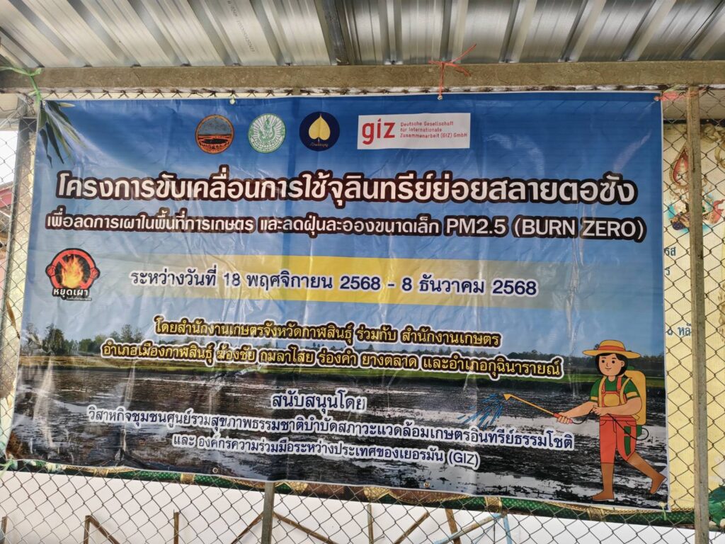 วันที่ 4 ธันวาคม 2568 นายก่อเกียรติ ใจอ่อน นักวิชาการส่งเสริมการเกษตรชำนาญการ รักษาราชการแทนเกษตรอำเภอกุฉินารายณ์ มอบหมายให้เจ้าหน้าที่สำนักงานเกษตรอำเภอกุฉินารายณ์ และนักศึกษาฝึกประสบการณ์ มหาวิทยาลัยกาฬสินธุ์ ลงพื้นที่ร่วมกับสำนักงานเกษตรจังหวัดกาฬสินธุ์ นำโดยนายคมกริช ไตรยศ เกษตรจังหวัดกาฬสินธุ์ พร้อมเจ้าหน้าที่สำนักงานเกษตรจังหวัดกาฬสินธุ์ จัดกิจกรรมโครงการขับเคลื่อนการใช้จุลินทรีย์ย่อยสลายตอซัง เพื่อลดการเผาในพื้นที่การเกษตร และลดฝุ่นละอองขนาดเล็ก PM2.5 (Burn Zero) บูรณาการร่วมกับ โครงการเพิ่มศักยภาพการปลูกข้าวที่เท่าทันต่อภูมิอากาศ (Thai Rice GCF) ณ ศูนย์จัดการดินปุ๋ยชุมชนตำบลแจนแลน อำเภอกุฉินารายณ์ จังหวัดกาฬสินธุ์