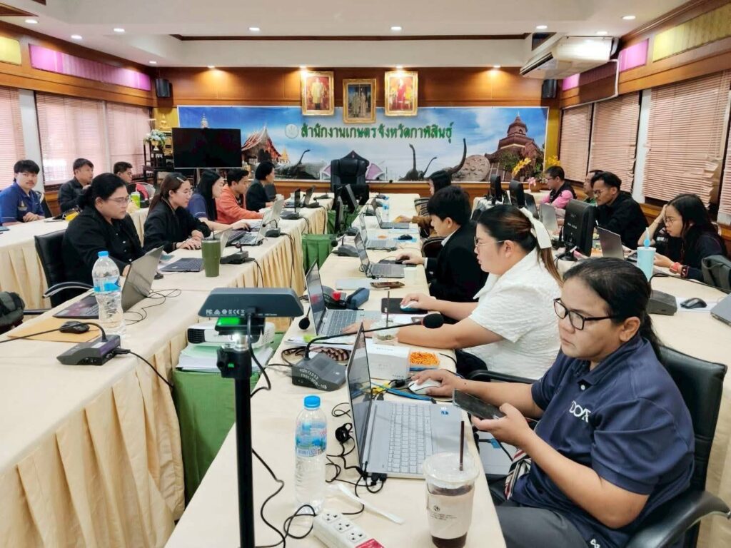 นางสาวพัฒน์พิไล วุฒิสาวงค์ เกษตรอำเภอเมืองกาฬสินธุ์ มอบหมายให้ นายศราวุธ ศรีสว่างวงศ์ นักวิชาการส่งเสริมการเกษตรชำนาญการ พร้อมด้วยเจ้าหน้าที่สำนักงานเกษตรอำเภอเมืองกาฬสินธุ์ เข้าร่วมประชุมเชิงปฏิบัติการจัดทำแผนที่ประเมินความเสี่ยงด้านการเกษตร ณ ห้องประชุมสำนักงานเกษตรจังหวัดกาฬสินธุ์ อำเภอเมืองกาฬสินธุ์ จังหวัดกาฬสินธุ์