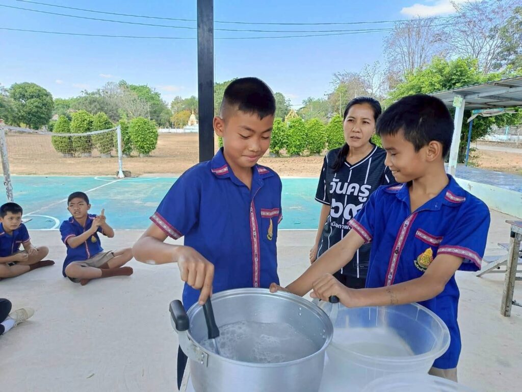 นางสาวพัฒน์พิไล วุฒิสาวงค์ เกษตรอำเภอเมืองกาฬสินธุ์ มอบหมายให้ นายชัยวัฒน์ วัฒนาวุฒิกุล นักวิชาการส่งเสริมการเกษตรชำนาญการ สำนักงานเกษตรอำเภอเมืองกาฬสินธุ์ ลงพื้นที่เยี่ยมเยียนและติดตาม กลุ่มยุวเกษตรกรโรงเรียนบ้านสว่าง สาธิตการทำน้ำยาล้างจาน ณ โรงเรียนบ้านสว่าง หมู่ 1 ตำบลภูดิน อำเภอเมืองกาฬสินธุ์ จังหวัดกาฬสินธุ์