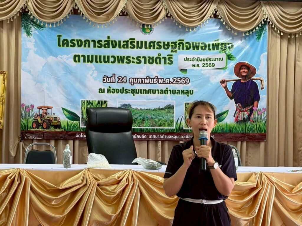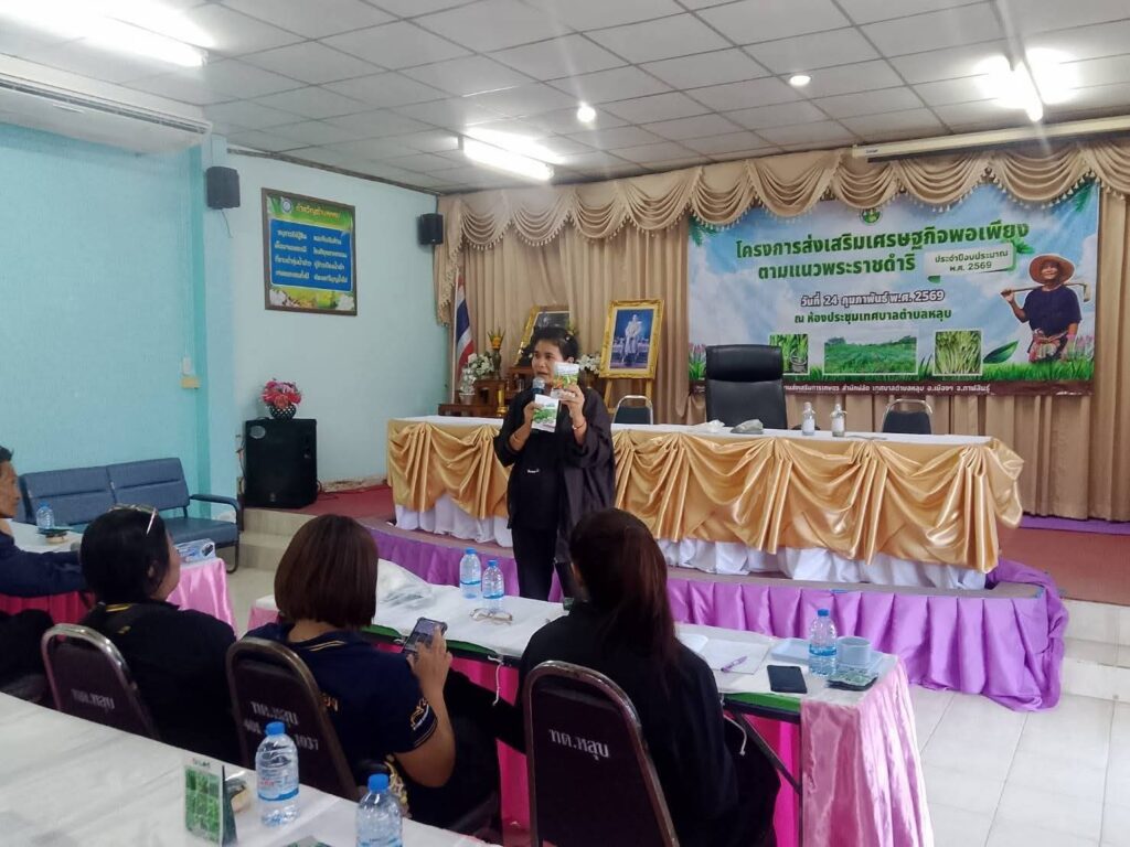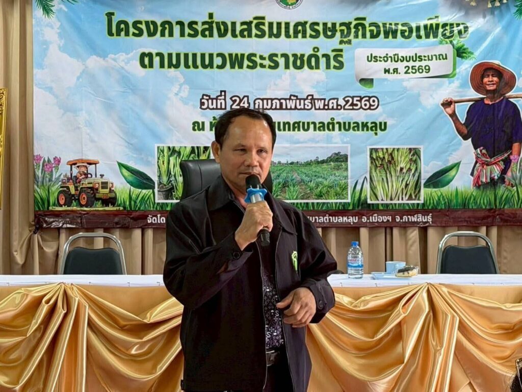 นางสาวพัฒน์พิไล วุฒิสาวงค์ เกษตรอำเภอเมืองกาฬสินธุ์ มอบหมายให้ นางสาววิไลพร บุญสุรี นักวิชาการส่งเสริมการเกษตรชำนาญการ พร้อมด้วยเจ้าหน้าที่ สำนักงานเกษตรอำเภอเมืองกาฬสินธุ์และนายสุปัน ทวยเที่ยง ปราชญ์เกษตร ร่วมเป็นวิทยากร ให้ความรู้การปลูกดอกกระเจียวและการผลิตจุลินทรีย์ป้องกันกำจัดโรคและแมลง โครงการส่งเสริมเศรษฐกิจพอเพียงตามแนวพระราชดำริ ประจำปีงบประมาณ พ.ศ 2569 ที่จัดโดยสำนักงานเทศบาลตำบลหลุบ ณ ห้องประชุมสำนักงานเทศบาลตำบลหลุบ อำเภอเมืองกาฬสินธุ์ จังหวัดกาฬสินธุ์