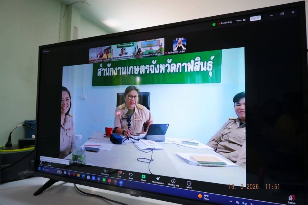 นางสาวพัฒน์พิไล วุฒิสาวงค์ เกษตรอำเภอเมืองกาฬสินธุ์ พร้อมด้วยเจ้าหน้าที่สำนักงานเกษตรอำเภอเมืองกาฬสินธุ์ ร่วมประชุมการติดตามนิเทศงาน ตามระบบส่งเสริมการเกษตร (T&V System) เพื่อเชื่อมโยงการปฏิบัติงานระหว่างสำนักงานเกษตรจังหวัดกับเกษตรอำเภอ เพื่อให้ทราบความก้าวหน้า ปัญหา และอุปสรรค ในการดำเนินงาน นำโดยนางสาวอริสรา ภูเด่นผา หัวหน้ากลุ่มส่งเสริมและพัฒนาการผลิต ผ่านระบบออนไลน์ (zoom meeting) ผ่านระบบประชุมทางไกล Zoom Meeting ณ สำนักงานเกษตรอำเภอเมืองกาฬสินธุ์