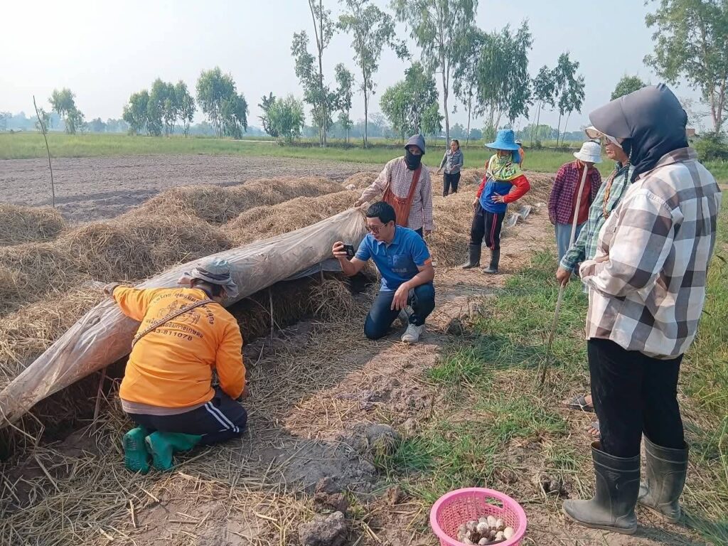 นางสาวพัฒน์พิไล วุฒิสาวงค์ เกษตรอำเภอเมืองกาฬสินธุ์ มอบหมายให้ นางสาววิลาวัลย์ เวียนเตียง นักวิชาการส่งเสริมการเกษตรชำนาญการ พร้อมด้วยเจ้าหน้าที่สำนักงานเกษตรอำเภอเมืองกาฬสินธุ์ ลงพื้นที่ในการเยี่ยมเยียนติดตามและเก็บผลผลิตเห็ดฟ่าง ในแปลงเรียนรู้การบริหารจัดการพื้นที่เกษตรที่เป็นมิตรกับสิ่งแวดล้อมปลูกพืชใช้น้ำน้อย โครงการส่งเสริมการเกษตรที่เป็นมิตรกับสิ่งแวดล้อม ประจำปีงบประมาณ พ.ศ. 2569 ณ หมู่ 8 ตำบลเหนือ อำเภอเมืองกาฬสินธุ์ จังหวัดกาฬสินธุ์