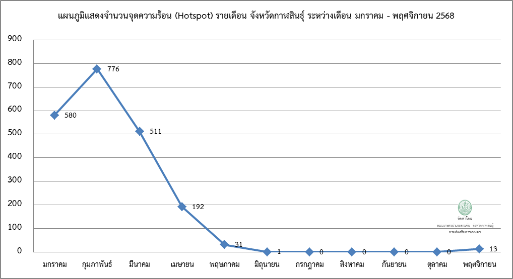 สถิติข้อมูลจุดความร้อน จังหวัดกาฬสินธุ์ ปี 2569
