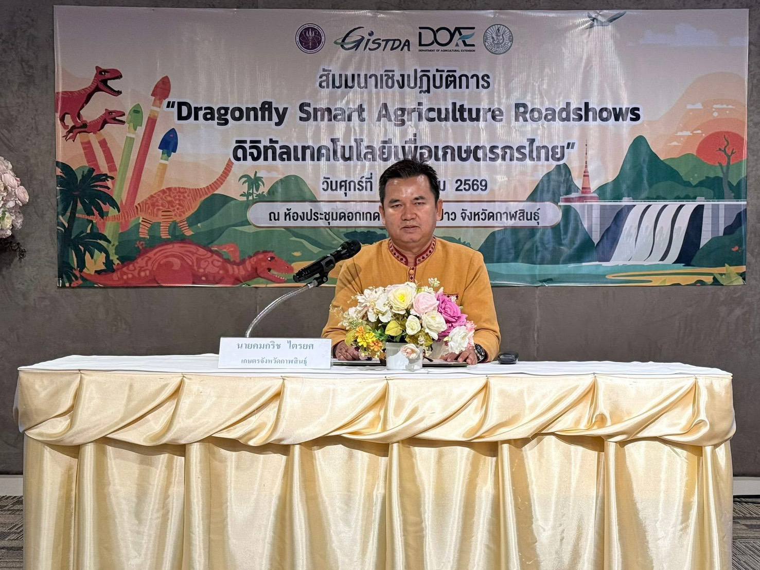 วันที่ 20 มีนาคม 2569 นางสาวรัชนี กุลศรี เกษตรอำเภอสามชัย รักษาราชการแทนเกษตรอำเภอนาคู มอบหมายให้นายครรชิต ป้องพันธ์ นักวิชาการส่งเสริมการเกษตรชำนาญการ นางสาวกิมิทา โคเวียง นักวิชาการส่งเสริมการเกษตรปฏิบัติการ และนายกิตติ ทองปลิว ประธาน Young Smart Farmer อำเภอนาคู เข้าร่วมสัมมนาเชิงปฏิบัติการ “Dragonfly Smart Agriculture Roadshows ดิจิทัลเทคโนโลยีเพื่อเกษตรกรไทย”