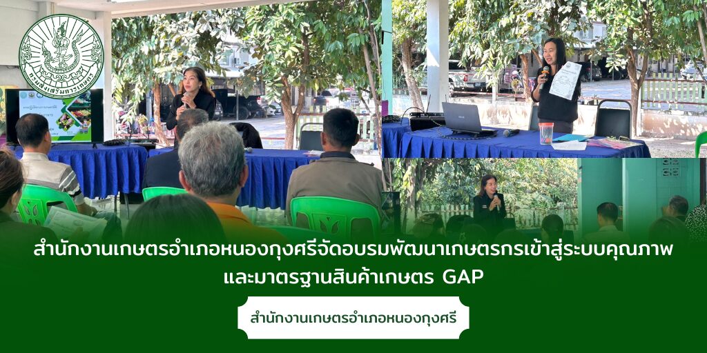 วันที่ 13 มกราคม 2569 เวลา 08.30 น. นางรวิสรา นรินญา เกษตรอำเภอหนองกุงศรี มอบหมายให้ นางสาวชุลีรัตน์ ไพศาล นักวิชาการส่งเสริมการเกษตรชำนาญการ จัดอบรมพัฒนาเกษตรกรเข้าสู่ระบบคุณภาพและมาตรฐานสินค้าเกษตร GAP โครงการระบบส่งเสริมเกษตรแปลงใหญ่เพื่อปรับเพิ่มผลิตภาพการผลิต ประจำปีงบประมาณ พ.ศ.2569 กิจกรรมพัฒนาคุณภาพมาตรฐานสินค้าเกษตรในแปลงใหญ่ ยกระดับการผลิตและคุณภาพผลผลิตสินค้าเกษตรสู่มาตรฐาน GAP ณ สำนักงานเกษตรอำเภอหนองกุงศรี จังหวัดกาฬสินธุ์