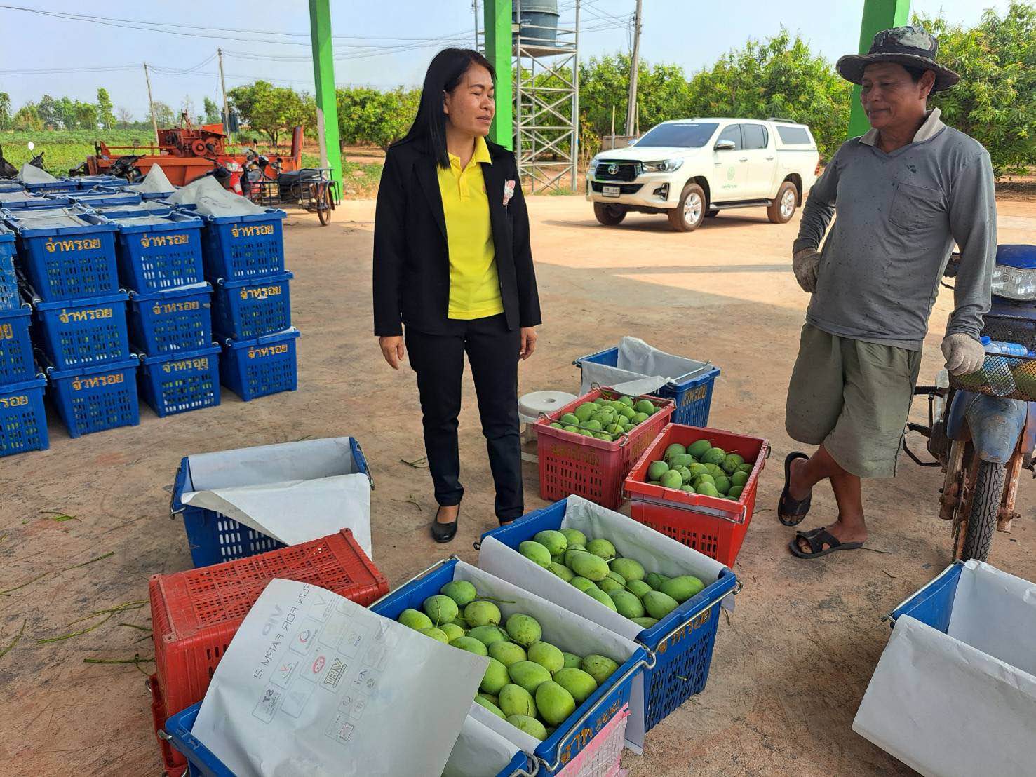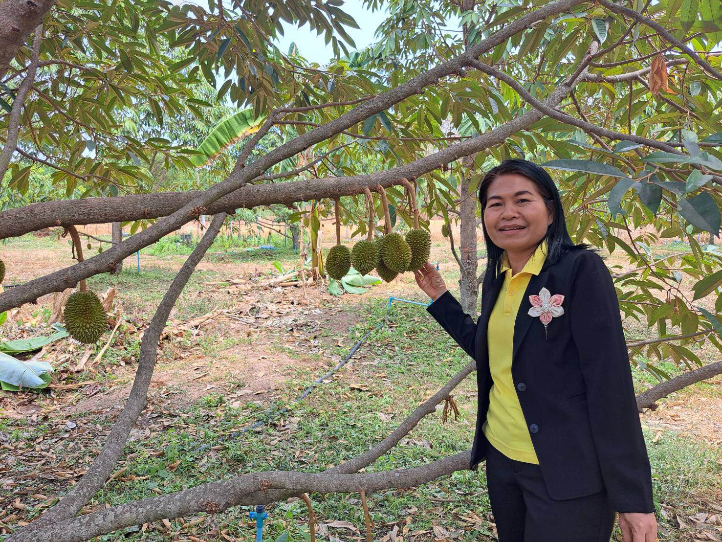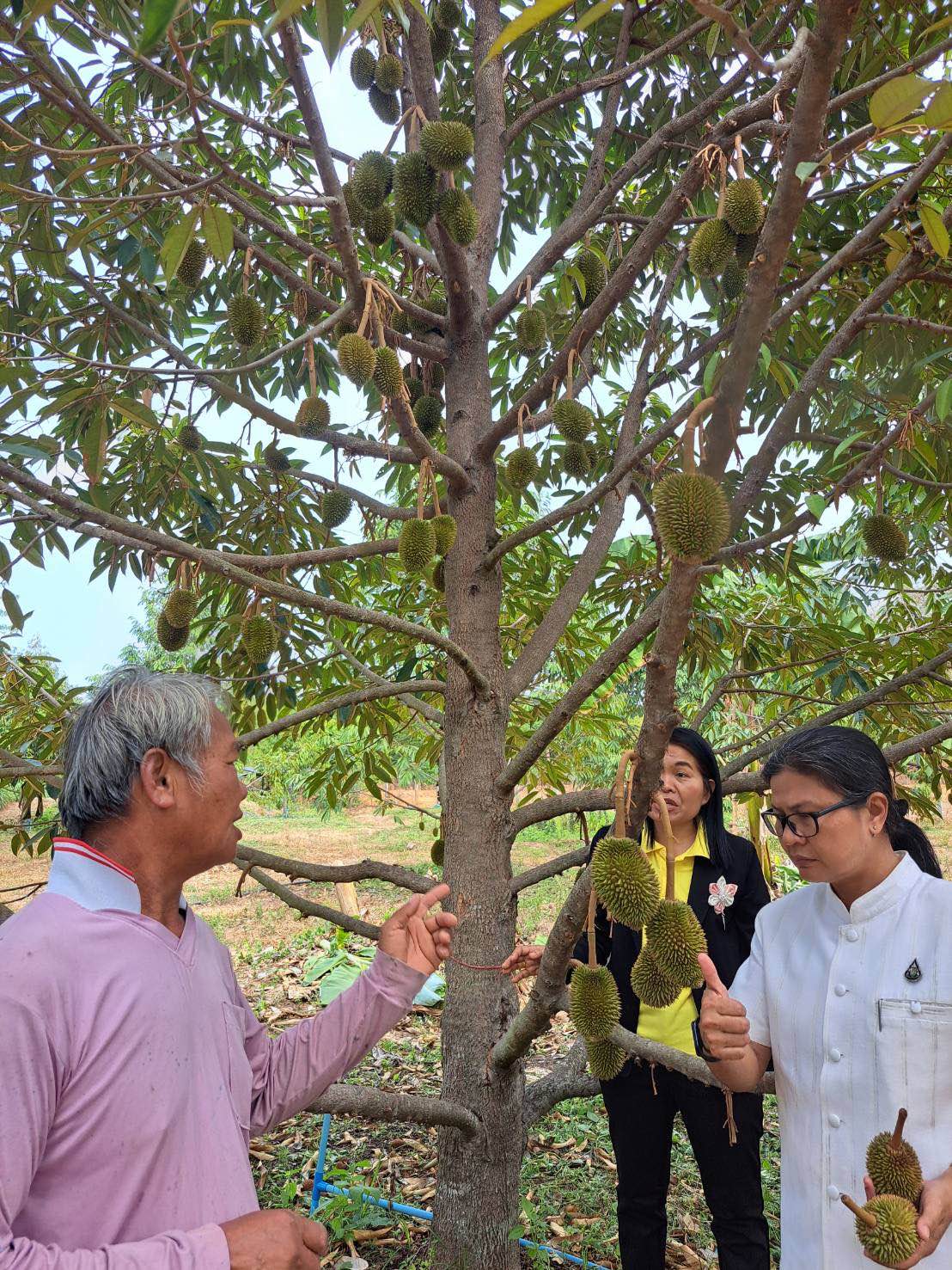 เกษตรจังหวัดกาฬสินธุ์ลงพื้นที่เยี่ยมชมผลการดำเนินงานโครงการยกระดับแปลงใหญ่ กลุ่มแปลงใหญ่มะม่วงบึงวิชัย และเกษตรกรผู้ปลูกทุเรียนพื้นที่อำเภอเมืองกาฬสินธุ์ จังหวัดกาฬสินธุ์