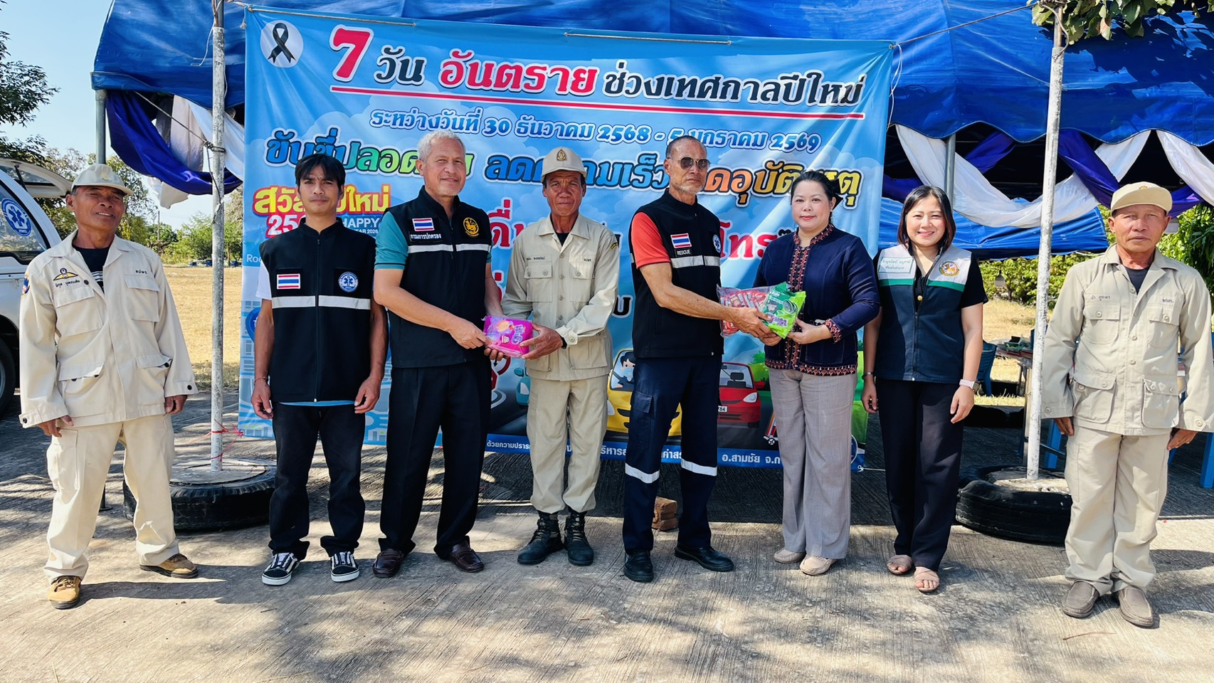 วันที่ 31 ธันวาคม 2568 คณะทำงานตรวจติดตาม ตรวจเยี่ยมจุดตรวจและให้บริการประชาชนในช่วงเทศกาลปีใหม่ 2569 อำเภอสามชัย จังหวัดกาฬสินธุ์ คณะทำงานชุดที่ 2 ประกอบด้วยนายอนันต์ บุรินทะ สาธารณสุชอำเภอสามชัย หัวหน้าคณะทำงาน นางสาวรัชนี กุลศรี เกษตรอำเภอสามชัย นางสาวเบญจรัตน์ อนุสรณ์ ท้องถิ่นอำเภอสามชัย นางสาวอนงค์พร แสงภักดี ปลัดองค์การบริหารส่วนตำบลตำสร้างเที่ยง นายธวัชชัย ภูสะอาด กำนันตำบลคำสร้างเที่ยง และนายณัฐพล สินธุวา ปลัดอำเภอกลุ่มงานปกครอง ตรวจติดตาม/ตรวจเยี่ยมจุดตรวจฯ หลักและจุดตรวจรอง ทั้ง 5 แห่งในพื้นที่อำเภอสามชัย เพื่อสร้างขวัญกำลังใจแก่เจ้าหน้าที่ผู้ปฏิบัติงาน จากการรายงาน ระหว่างวันที่ 30 ธันวาคม ถึง เวลา 11.00 น. ของวันที่ 31 ธันวาคม 2568 ไม่พบอุบัติเหตุที่ทำให้เกิดการสูญเสียทรัพย์สิน และชีวิต