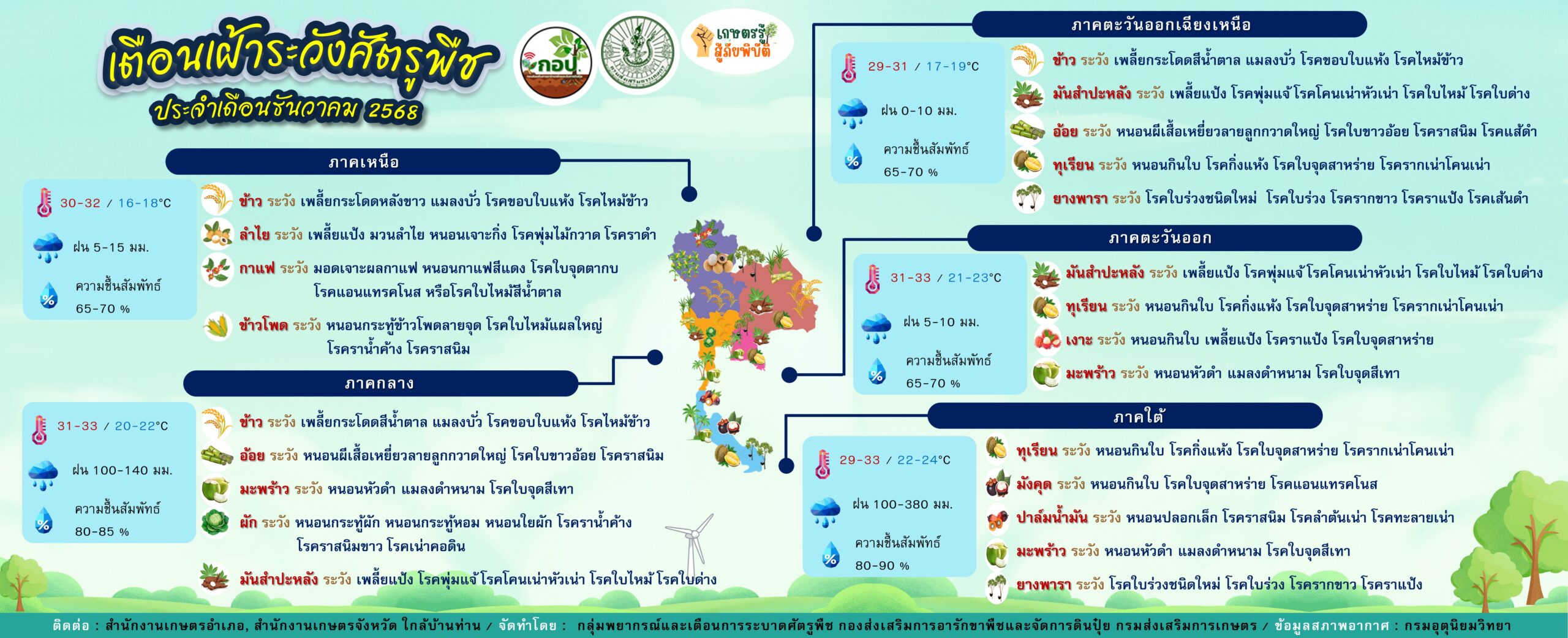 เตือนเฝ้าระวังศัตรูพืชระหว่างวันที่ 27 พฤศจิกายน – 10 ธันวาคม 2568