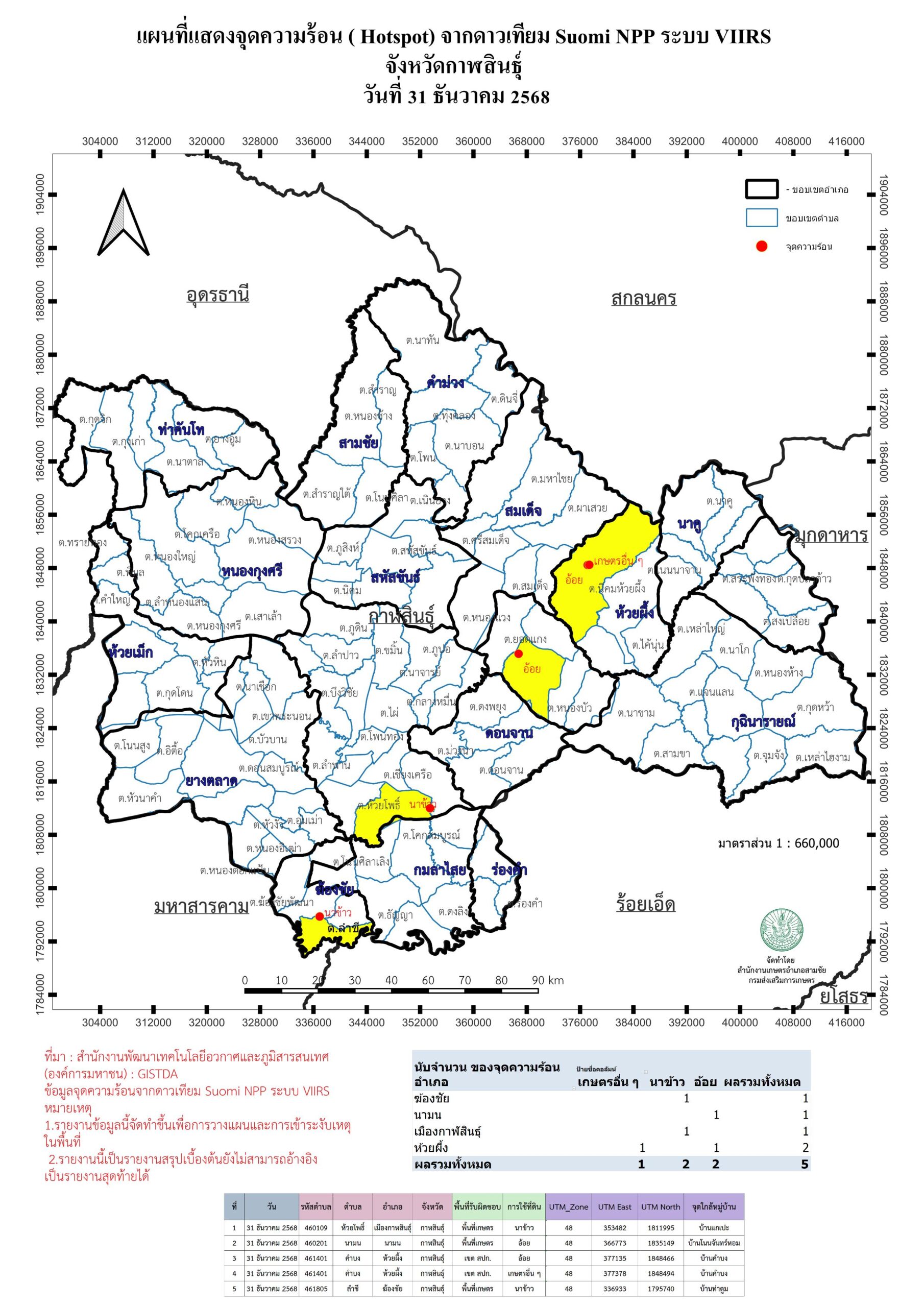 แผนที่แสดงจุดความร้อน ( Hotspot) จากดาวเทียม Suomi NPP ระบบ VIIRS 20251231 31 ธันวาคม 2025 ข้อมูลจุดความร้อน ( Hotspot) จากดาวเทียม Suomi NPP ระบบ VIIRS จังหวัดกาฬสินธุ์ วันที่ 31 ธันวาคม 2568 4600_20251231ดาวน์โหลด 4600_20251231pดาวน์โหลด ต.ห้วยโพธิ์ อ.เมืองกาฬสินธุ์ ต.นามน อ.นามน ต.คำบง อ.ห้วยผึ้ง
