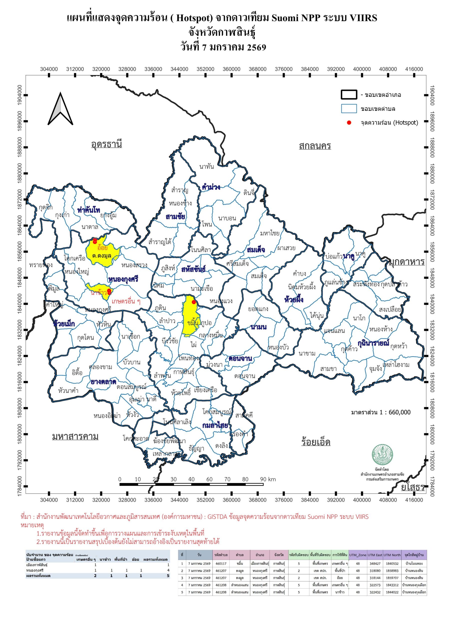 แผนที่แสดงจุดความร้อน ( Hotspot) จากดาวเทียม Suomi NPP ระบบ VIIRS 20260107 7 มกราคม 2026 ข้อมูลจุดความร้อน ( Hotspot) จากดาวเทียม Suomi NPP ระบบ VIIRS จังหวัดกาฬสินธุ์ วันที่ 7 มกราคม 2569 4600_20260107ดาวน์โหลด G_Vi1_20260107_0053ดาวน์โหลด ต.ดงมูล อ.หนองกุงศรีจุดที่ 1 จุดที่ 2 ต.ลำหนองแสน อ.หนองกุงศรีจุดที่ 1 จุดที่ 2 ต.ขมิ้น อ.กาฬสินธุ์