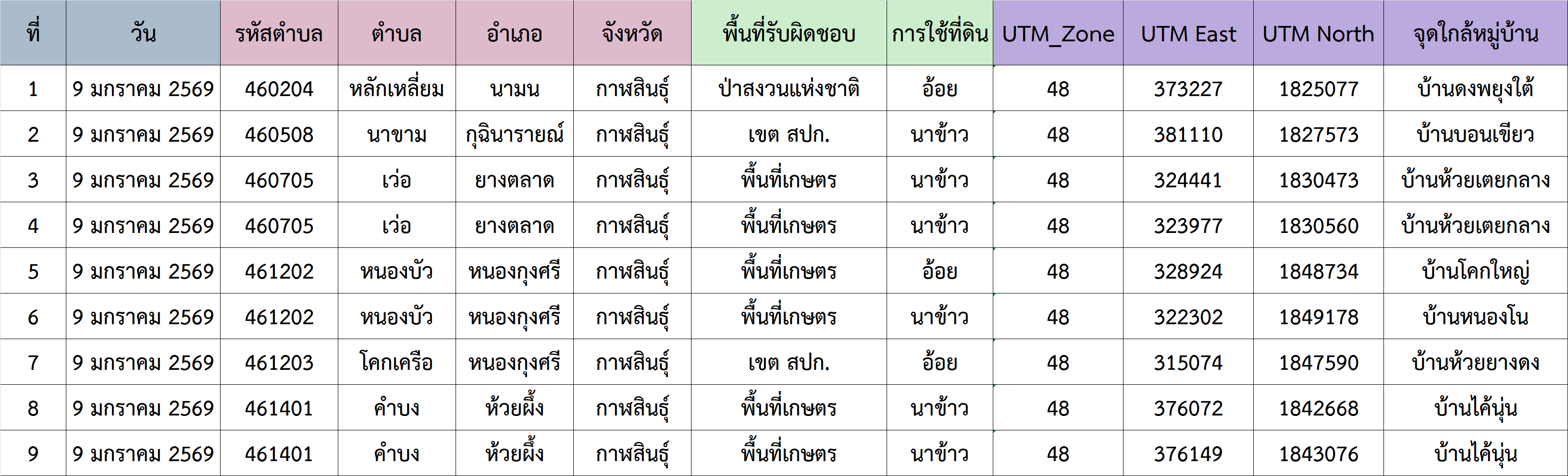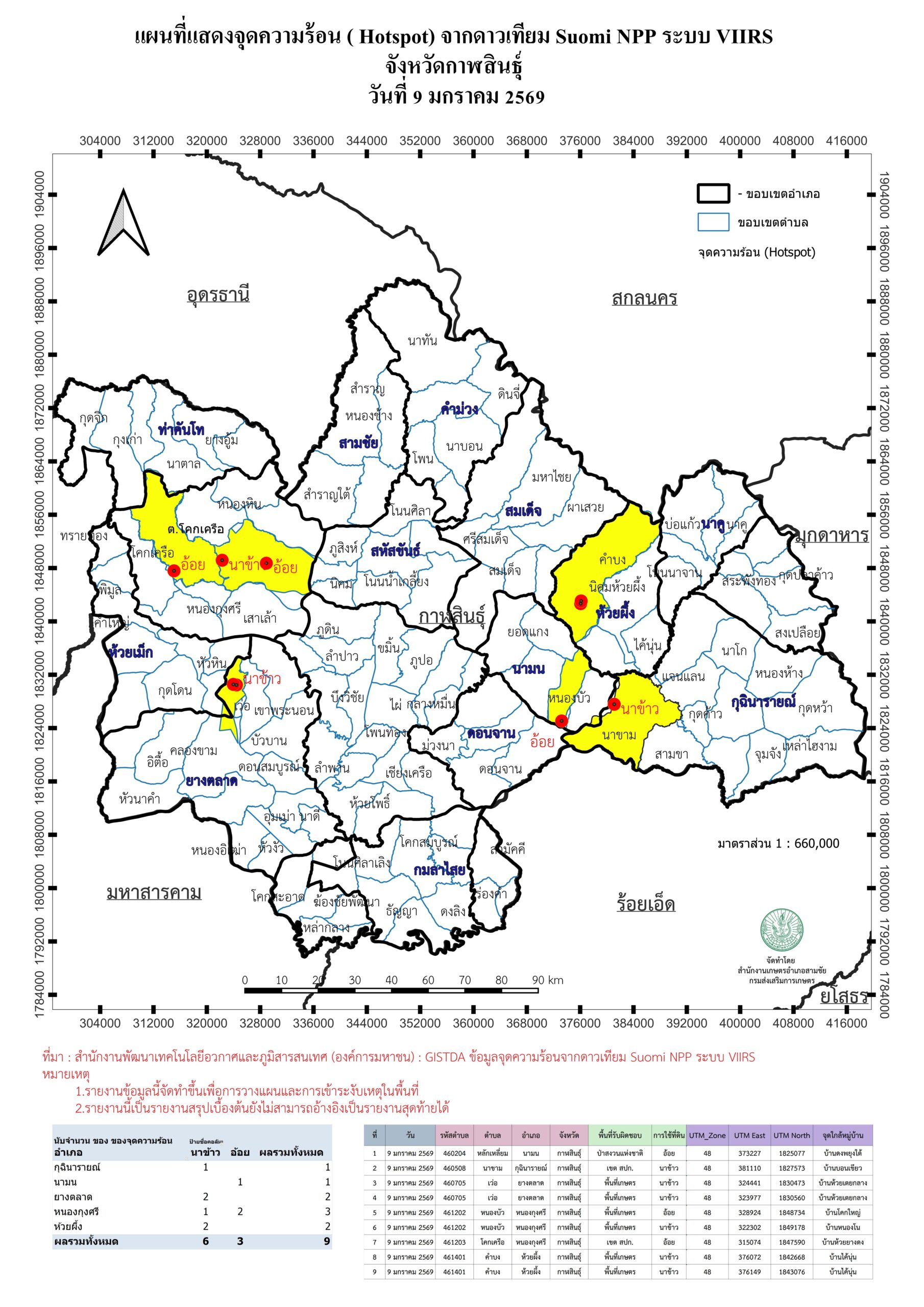 แผนที่แสดงจุดความร้อน ( Hotspot) จากดาวเทียม Suomi NPP ระบบ VIIRS 20260109 9 มกราคม 2026 ข้อมูลจุดความร้อน ( Hotspot) จากดาวเทียม Suomi NPP ระบบ VIIRS จังหวัดกาฬสินธุ์ วันที่ 9 มกราคม 2569 4600_20260109ดาวน์โหลด G_Vi1_20260109_1306ดาวน์โหลด ต.หลักเหลี่ยม อ.นามน ต.นาขาม อ.กุฉินารายณ์ ต.เว่อ อ.ยางตลาดจุดที่ 1 จุดที่ 2 ต.โคกเครือ อ.หนองกุงศรี ต.หนองบัว อ.หนองกุงศรี ต.หนองบัว อ.หนองกุงศรี ต.คำบง อ.ห้วยผึ้งจุดที่ 1 จุดที่ 2