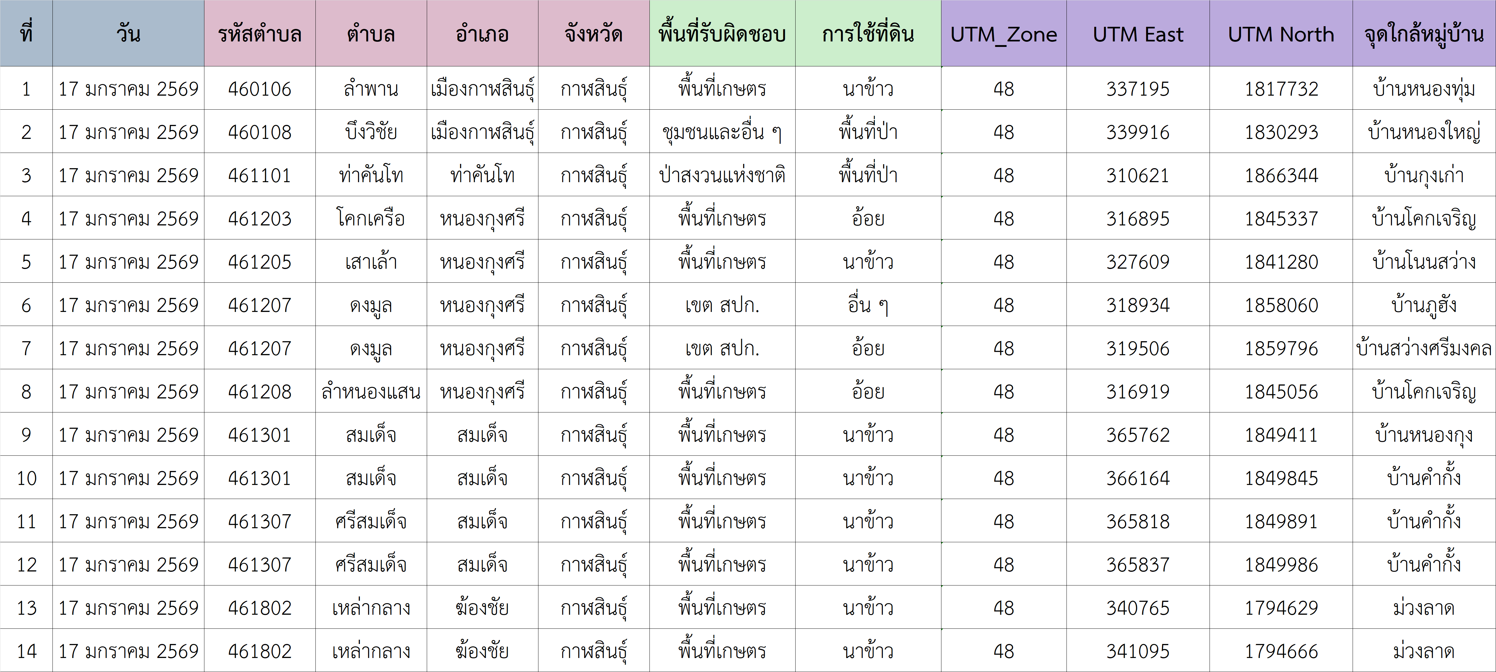 ข้อมูลจุดความร้อน ( Hotspot) จากดาวเทียม Suomi NPP ระบบ VIIRS จังหวัดกาฬสินธุ์