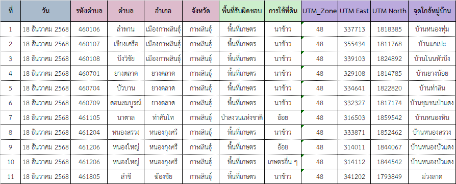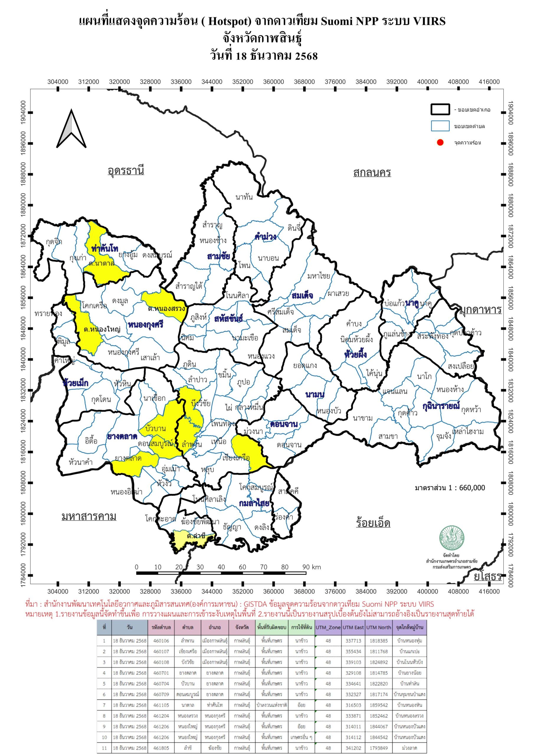 แผนที่แสดงจุดความร้อน ( Hotspot) จากดาวเทียม Suomi NPP ระบบ VIIRS 20251218 18 ธันวาคม 2025 ข้อมูลจุดความร้อน ( Hotspot) จากดาวเทียม Suomi NPP ระบบ VIIRS จังหวัดกาฬสินธุ์ วันที่ 18 ธันวาคม 2568 4600_20251218ดาวน์โหลด G_Vi1_20251218_0207ดาวน์โหลด G_Vi1_20251218_1315ดาวน์โหลด