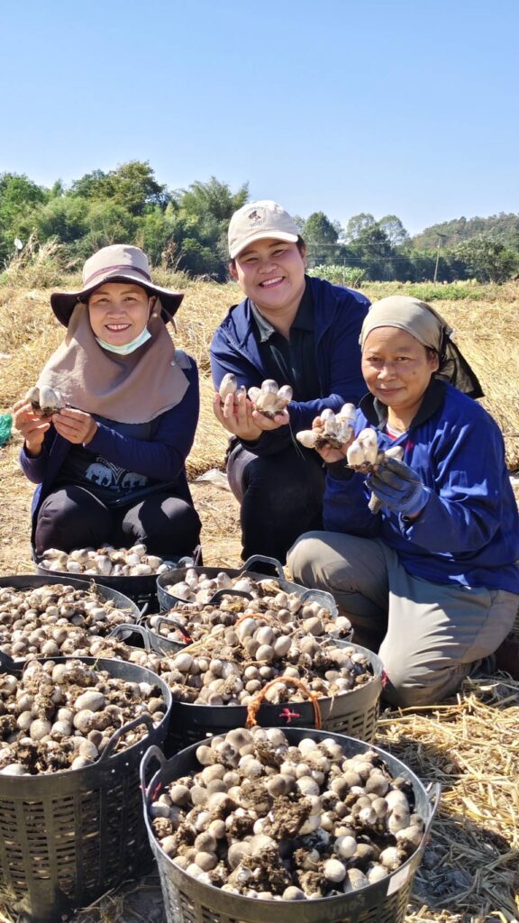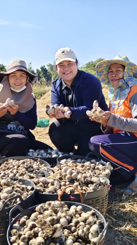 วันที่ 6 มกราคม 2569 นางวัชรีกร เกียรติสุขุมพงศ์ นักวิชาการส่งเสริมการเกษตรชำนาญการ รักษาราชการแทนเกษตรอำเภอสมเด็จ มอบหมายให้เจ้าหน้าที่สำนักงานเกษตรอำเภอสมเด็จลงพื้นที่ติดตามการดำเนินงานของเกษตรกรบ้านขมิ้น หมู่ที่ 9 ตำบลผาเสวย อำเภอสมเด็จ จังหวัดกาฬสินธุ์ ซึ่งได้เพาะเห็ดฟางกองเตี้ย เป็นอีกหนึ่งอาชีพเสริมที่สร้างรายได้ให้กับเกษตรกร หลังจากฤดูทำนาจะไม่ทิ้งหรือเผาฟางข้าว โดยจะนำมาเพาะเห็ดฟางกองเตี้ย ซึ่งเป็นอีกหนึ่งวิธีในการช่วยลดการเผาหน้าดินในนาข้าว ช่วยลดมลพิษทางอากาศ และเมื่อเก็บเห็ดฟางหมด วัสดุที่เหลือใช้ก็จะทำเป็นปุ๋ยหมัก ปุ๋ยชีวภาพ นำไปใช้ปรับปรุงบำรุงดินในไร่นา นอกจากจะเป็นการช่วยลดต้นทุนการผลิตแล้ว ยังสามารถสร้างรายได้เสริม ให้ทุกครัวเรือนได้อีกด้วย