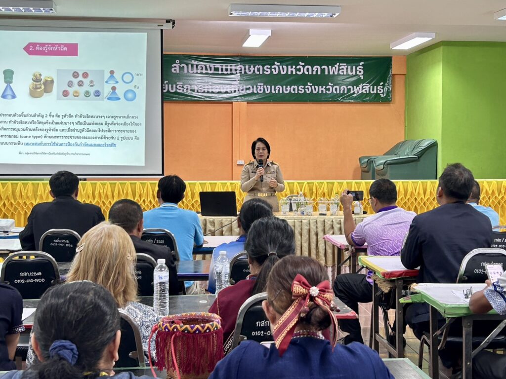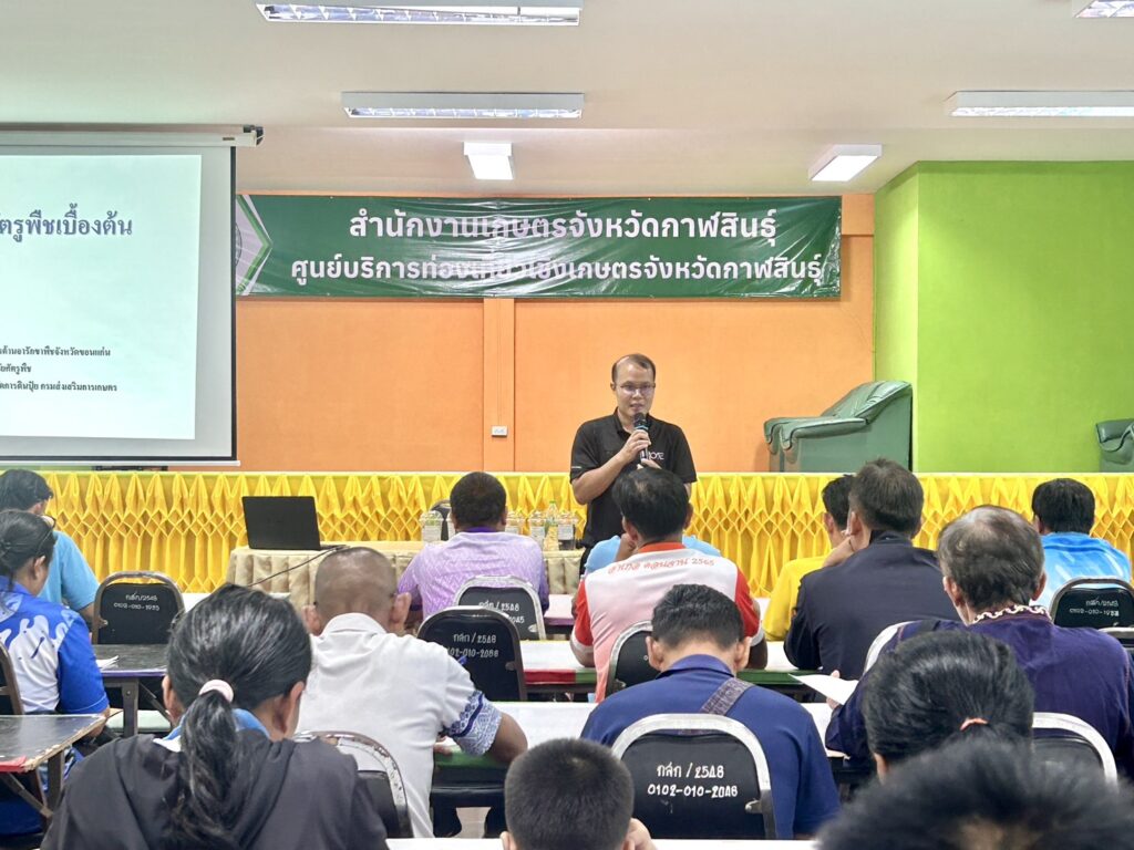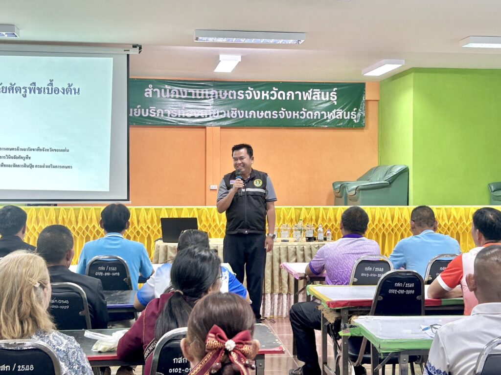 วันที่ 23 มีนาคม 2569 นายกิตติ ศรีสุราช เกษตรอำเภอสมเด็จ มอบหมายให้เจ้าหน้าที่สำนักงานเกษตรอำเภอสมเด็จ พร้อมด้วยเกษตรกร เข้าร่วมอบรมหลักสูตรการพัฒนาเกษตรกรผู้สำรวจแปลงติดตามสถานการณ์การระบาดศัตรูพืชโครงการส่งเสริมการจัดการสุขภาพพืชเพื่อเพิ่มประสิทธิภาพการผลิตสินค้าเกษตร ประจำปีงบประมาณ 2569 ภายใต้โครงการส่งเสริมการจัดการสุขภาพพืช เพื่อเพิ่มประสิทธิภาพการผลิตสินค้าเกษตร มุ่งสร้างเครือข่ายเฝ้าระวังภัยคุกคามพืชในระดับชุมชน กิจกรรมเฝ้าระวังและเตรียมความพร้อมรับมือสถานการณ์การระบาดศัตรูพืชเชิงรุก โดยมีนายคมกริช ไตรยศ เกษตรจังหวัดกาฬสินธุ์ เป็นประธานเปิดการอบรม ณ ศูนย์บริการท่องเที่ยวเชิงเกษตรจังหวัดกาฬสินธุ์ อำเภอเมืองกาฬสินธุ์ จังหวัดกาฬสินธุ์
