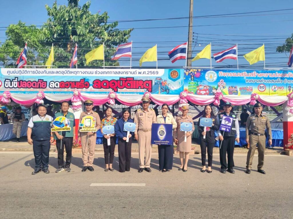 เมื่อวันที่ 9 เมษายน 2569 นายกิตติ ศรีสุราช เกษตรอำเภอสมเด็จ เข้าร่วมพิธี kick off เปิดปฏิบัติการศูนย์ความปลอดภัยทางถนนช่วงเทศกาลสงกรานต์ พ.ศ. 2569 และการรณรงค์ป้องกัน และแก้ปัญหาอุบัติเหตุทางถนนช่วงเทศกาลสงกรานต์ พ.ศ.2569 ซึ่งมีการบูรณาการกับทุกภาคส่วนในการป้องกันและลดอุบัติเหตุทางถนน โดยมีเป้าหมายหลักเพื่อลดจำนวนผู้เสียชีวิต ผู้บาดเจ็บ และจำนวนครั้งของการเกิดอุบัติเหตุทางถนนช่วงเทศการสงกรานต์ ระหว่างวันที่ 10-16 เมษายน 2569 ณ จุดตรวจหลักหน้าสถานีตำรวจภูธรสมเด็จ อำเภอสมเด็จ จังหวัดกาฬสินธุ์