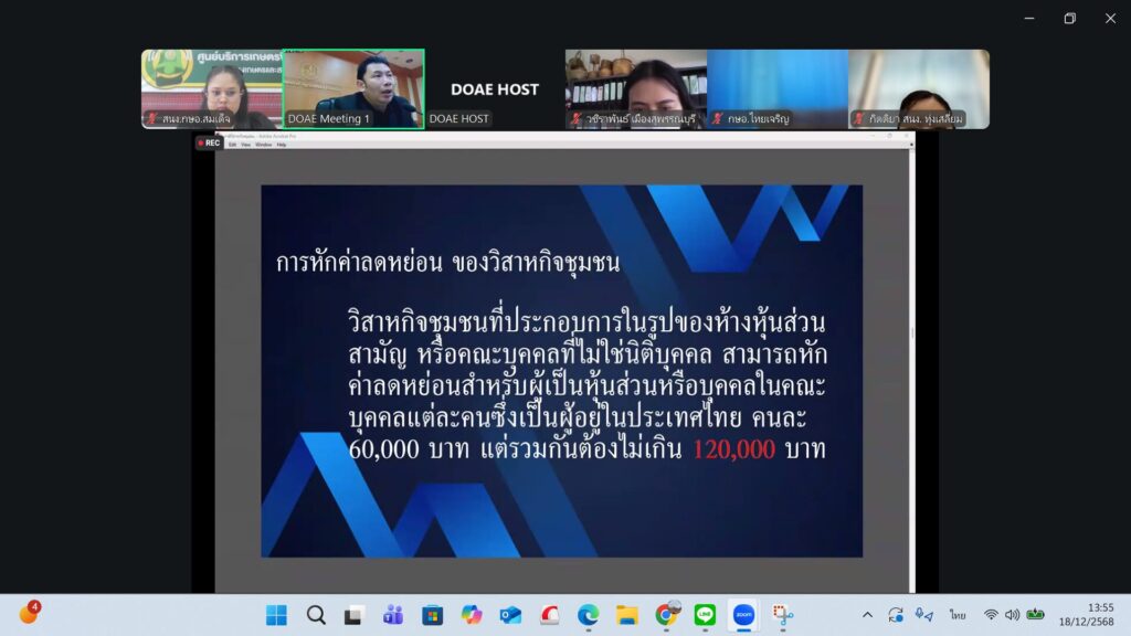 วันที่ 18 ธันวาคม 2568 นางวัชรีกร เกียรติสุขุมพงศ์ นักวิชาการส่งเสริมการเกษตรชำนาญการ รักษาราชการแทนเกษตรอำเภอสมเด็จ มอบหมายให้เจ้าหน้าที่สำนักงานเกษตรอำเภอสมเด็จ เข้าร่วมการอบรมนายทะเบียนวิสาหกิจชุมชนผ่าน online ระหว่างวันที่ 18-19 ธ.ค. 69 ณ สำนักงานเกษตรอำเภอสมเด็จ อำเภอสมเด็จ จังหวัดกาฬสินธุ์