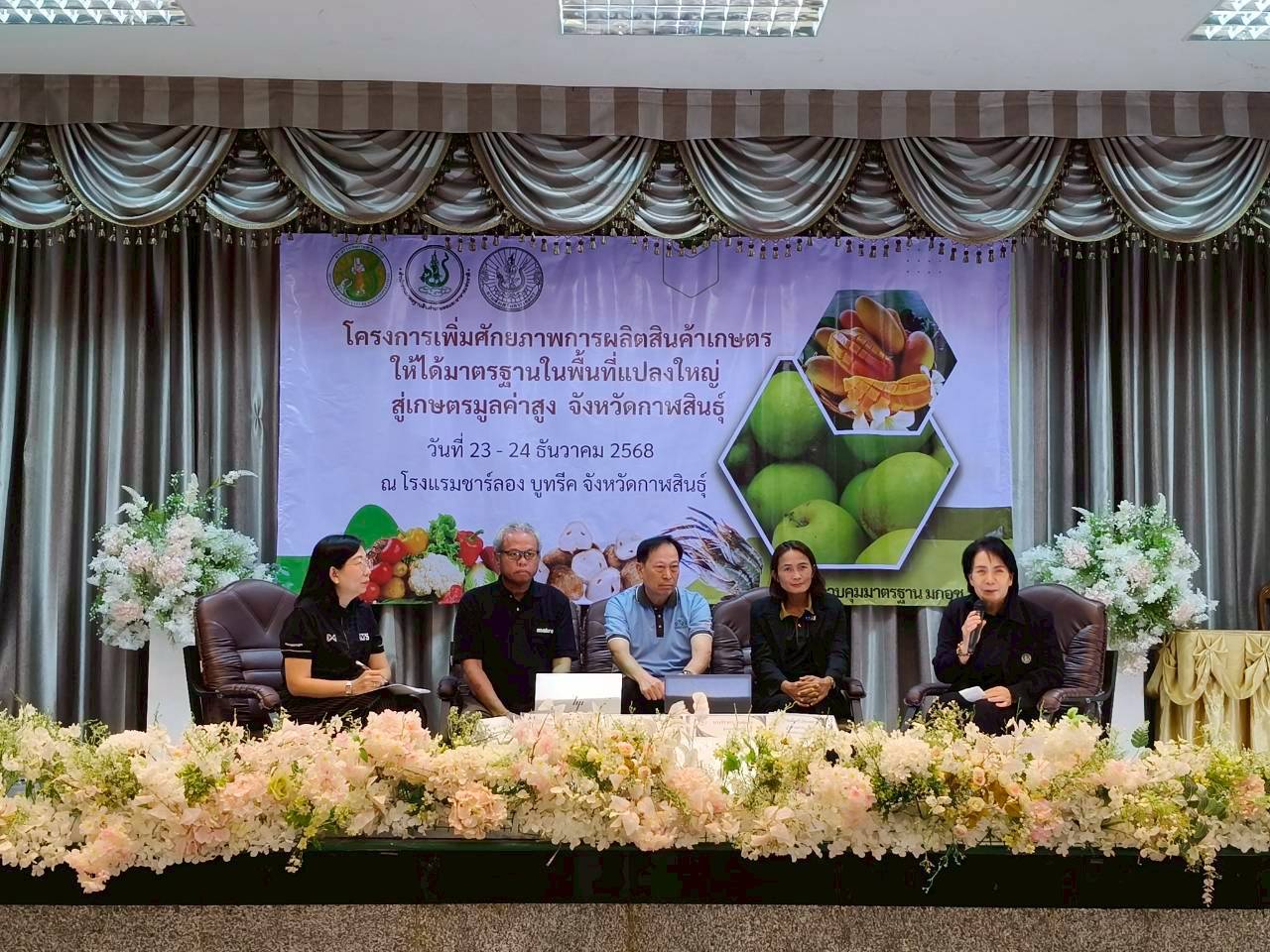 วันที่ 24 ธันวาคม 2568 นายธานินทร์ ภูติโส เกษตรอำเภอท่าคันโท มอบหมาย นางสาวเพ็ญจันทร์ ภูทองพัน นักวิชาการส่งเสริมการเกษตรชำนาญการ พร้อมด้วยเกษตรกรในพื้นที่อำเภอท่าคันโท จำนวน 5 ราย เข้าร่วมอบรมในโครงการเพิ่มศักยภาพการผลิตสินค้าเกษตรให้ได้มาตรฐานในพื้นที่แปลงใหญ่สู่เกษตรมูลค่าสูง จังหวัดกาฬสินธุ์ ระหว่างวันที่ 23 – 24 ธันวาคม 2568 โดยมี นายคมกริช ไตรยยศ เกษตรจังหวัดกาฬสินธุ์ เป็นประธานในการเปิดการอบรม ณ โรงแรมชาร์ลอง บูทรีค จังหวัดกาฬสินธุ์